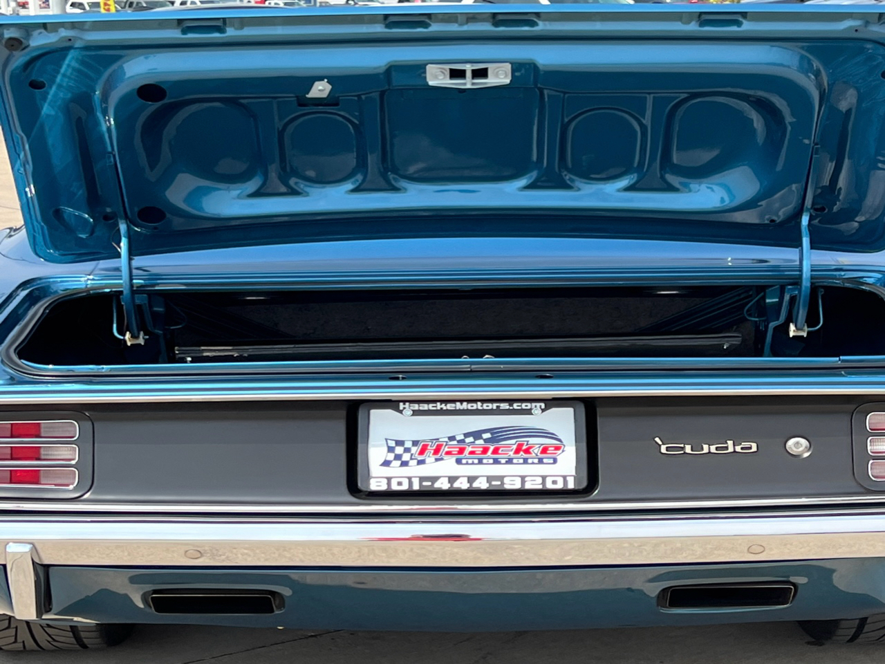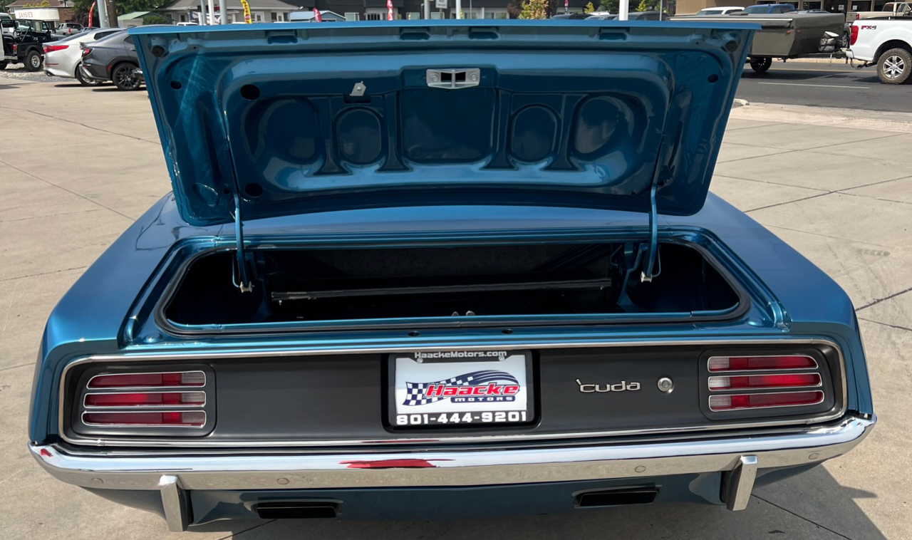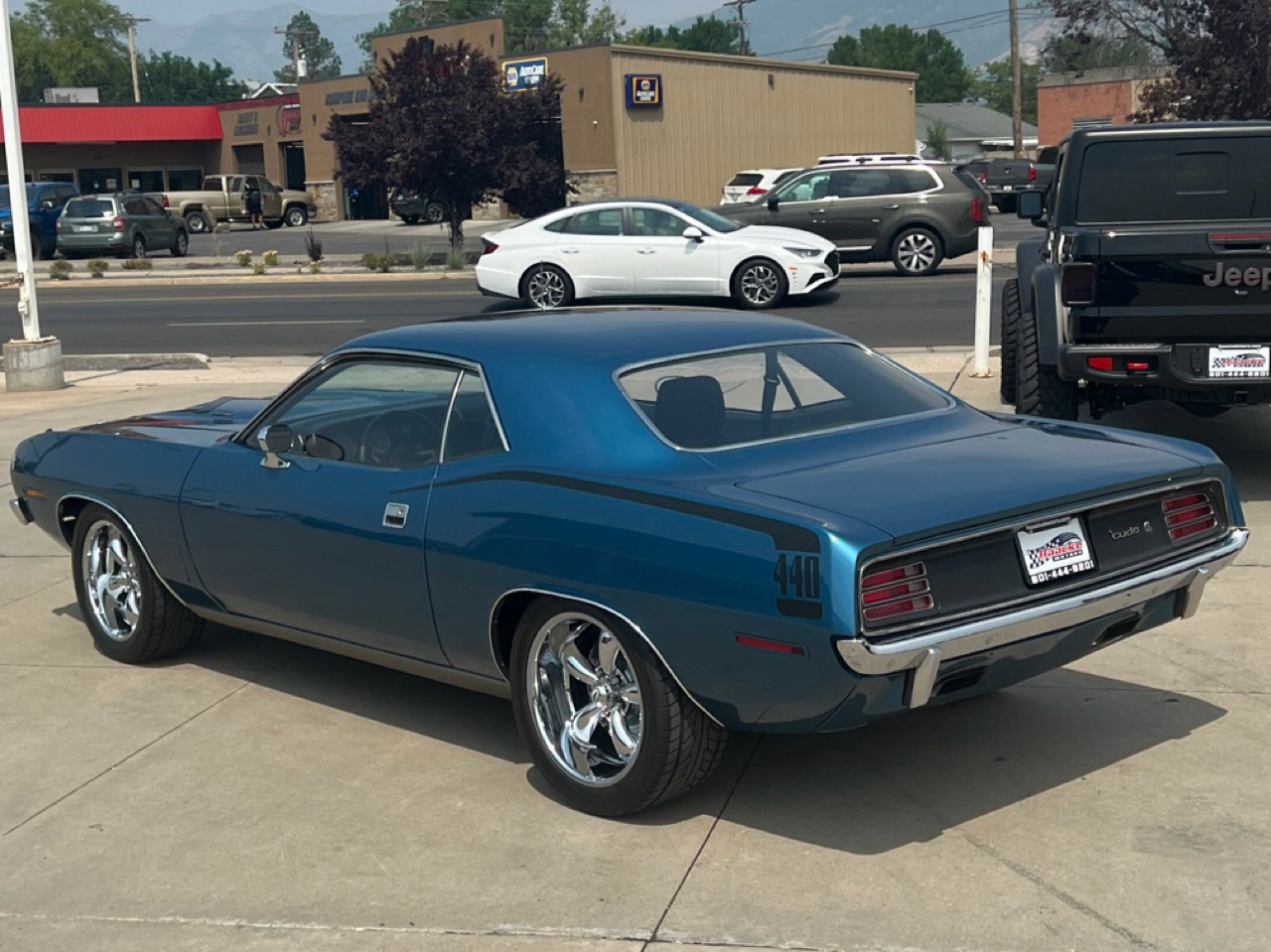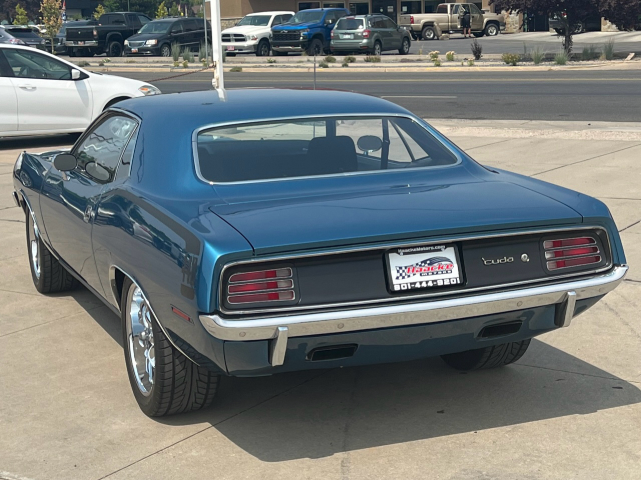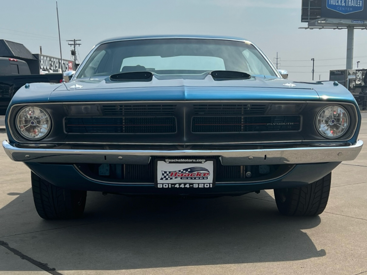 OH BARRACUDA! Sorry we just couldn't resist... We are pleased to present this 1970 Plymouth Barracuda restomod. This immaculate Cuda has had no expense spared over a 2 year professional build completed in 2009/2010. Powered by a custom built 520 Wedge Speed O Motive which makes 600 HP and 660 ft/lbs of torque, TTI Full length headers 3" X pipe Dynomax mufflers, Tremec 5 speed manual transmission, Keiser Engineering Stage 3 clutch, Dyna trac posi trac rear end 4.11's, Baer track system front and rear disc brakes, Ron Davis Racing custom radiator and fans, Unisteer Power steering, Firm Feel tubular upper control arms/boxed lower control arms, K Member, Torsion bushings, Solid tie rod sleeves, modified steering gear, pitman & idler arms, XV Motorsports Suspension kit, shock tower braces, custom QA1 shocks, 3 point seat belt kit, Corbeau Sport seats recovered rear seat to match fronts, Legendary Interiors complete interior, Pioneer audio system, Dyno mat sound insulation throughout, Paint and Body work performed by Gary Fronk, Coys C5 Chrome wheels/ Nitto NT555 tires, all parts were sourced new and every item of this car has been refurbished, replaced, and refinished. This is a true head turner and stunning example! This car has had approx 3k miles added since restoration. We dont store this at the lot so please call for an appointment to view. This is part of the Mopar collection we have for sale. Please visit www.haackemotors.com for more photos. Contact us at 801-444-9201