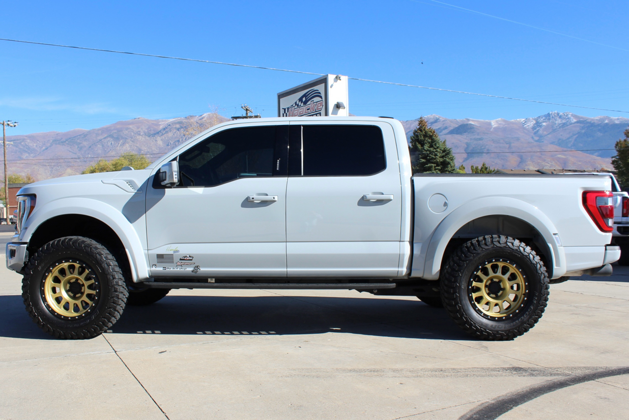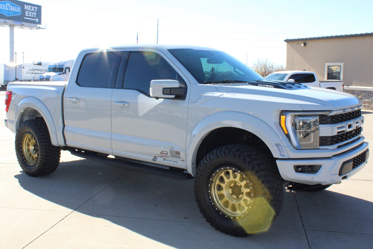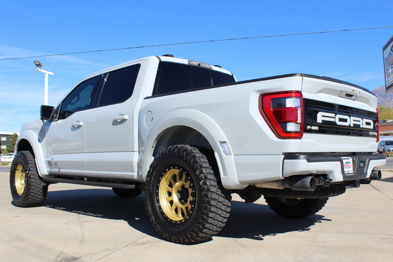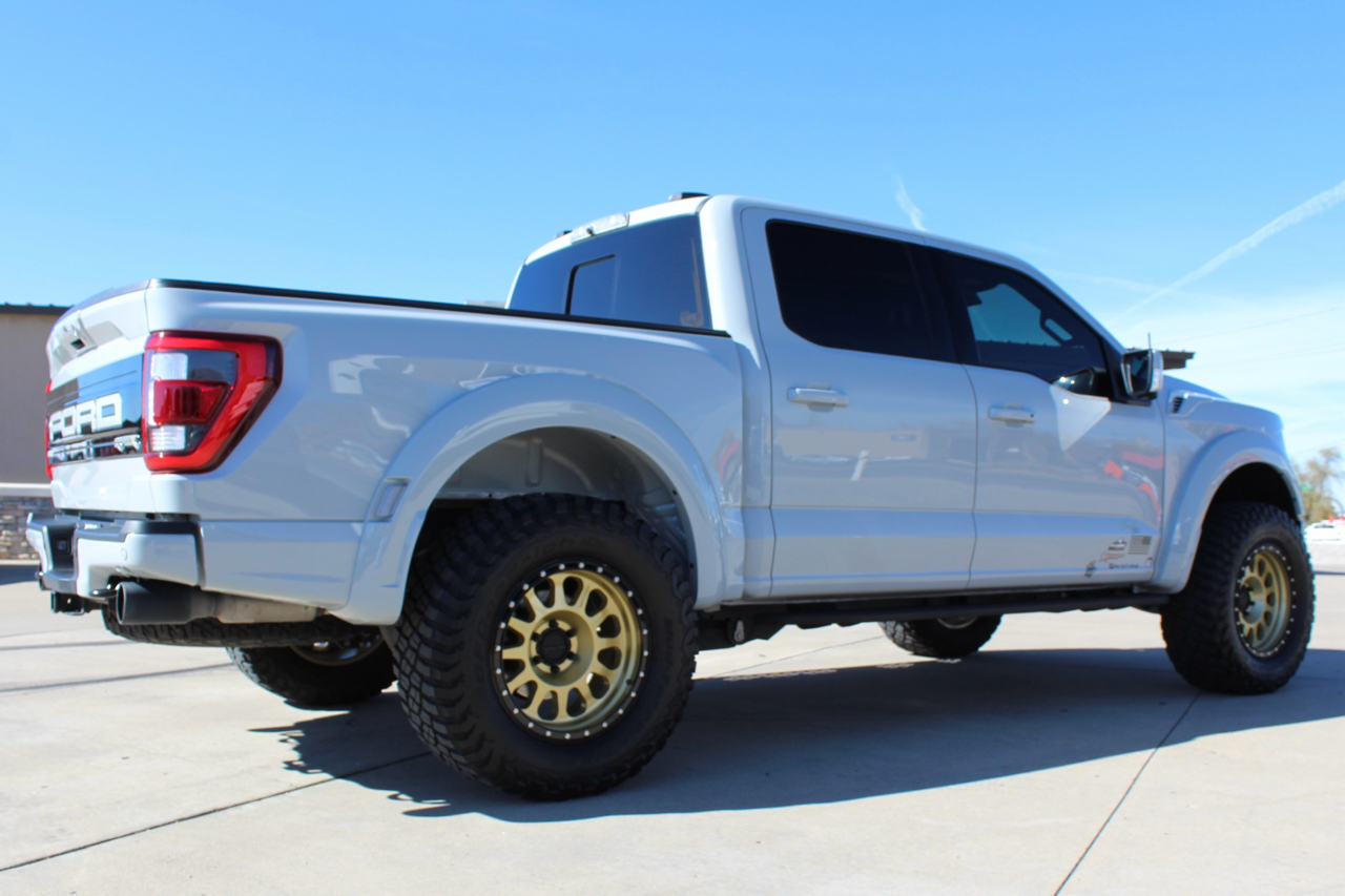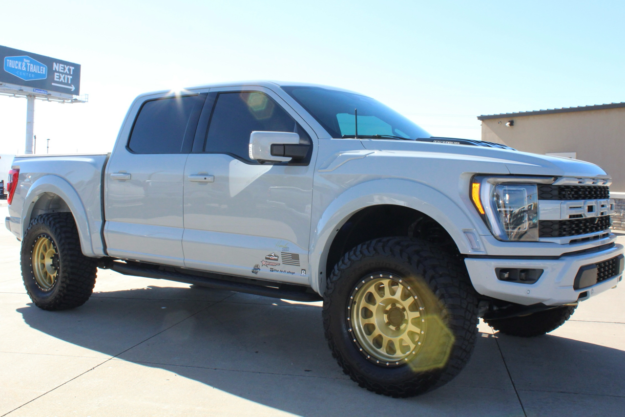 You may need a moment to check your pulse! If this doesn't elevate your heart rate you are probably dead! Just finished and absolutely stunning! This is one of the Baddest Raptors we have built or even seen, (if we do say so ourselves)…. and we have seen and built a lot of them! After a very painful long wait we finally got our hands on this R. Some of the subtle and not so subtle changes are.... 20"x10" Method 315 wheels finished Gold with a gloss black wheel lip, mounted on BFG KM3 Mud Terrain 37"x13.50 R 20 tires, and a RPG 1.5" front spacer make up the stance. We then color matched and custom painted the fender flares, flare extensions, grill, side vents, hood bulge, rear tailgate applique, proximity sensors, emblems, and both front and rear bumpers. We also added a full custom installed bedrug, Molle organizing panel, and a MX4 Bakflip bed cover. To finish up the exterior we tinted all the windows with 3M ceramic tint. Under the hood the 'R" has a TRX killing 5.2 supercharged V8 that makes a healthy 700 Horse Power...well that wasn't good enough so we added a Griptec 2.45 blower pulley to help make more boost at our elevation. Lastly we spent over 30 hours correcting the factory paint and then ceramic coating the entire truck even including the wheels! Not one detail in this build was over looked... notice the matching gold hooks, 'R' emblems, and custom painted tailgate applique.