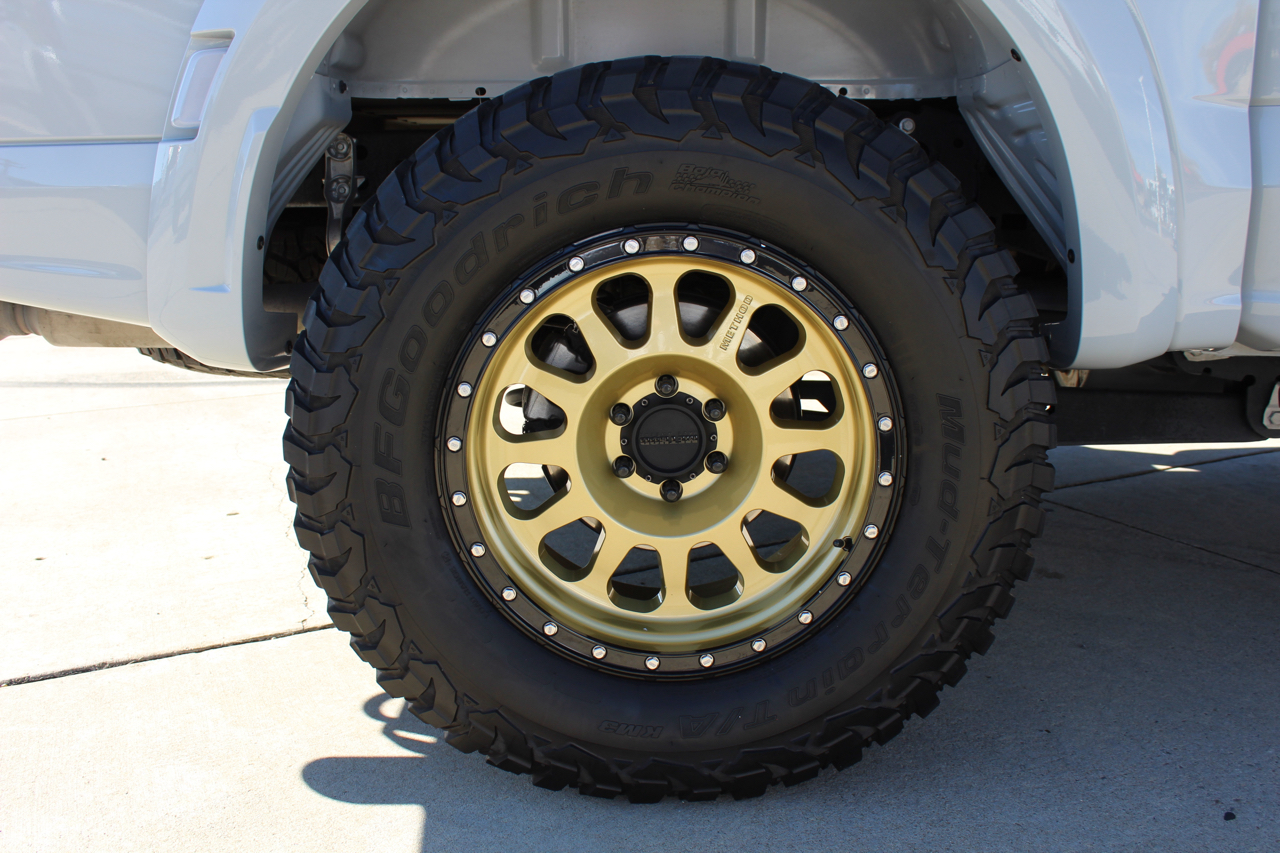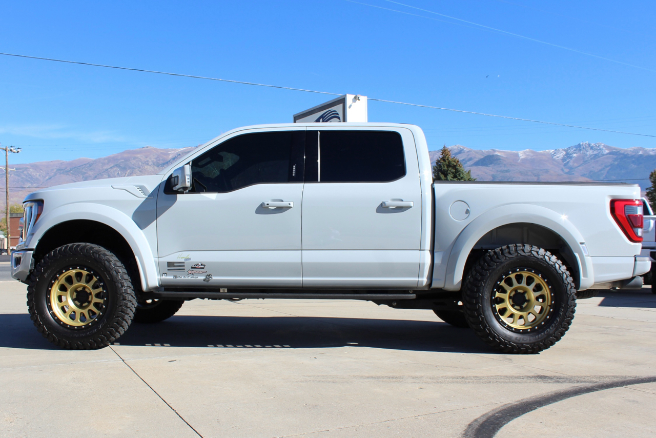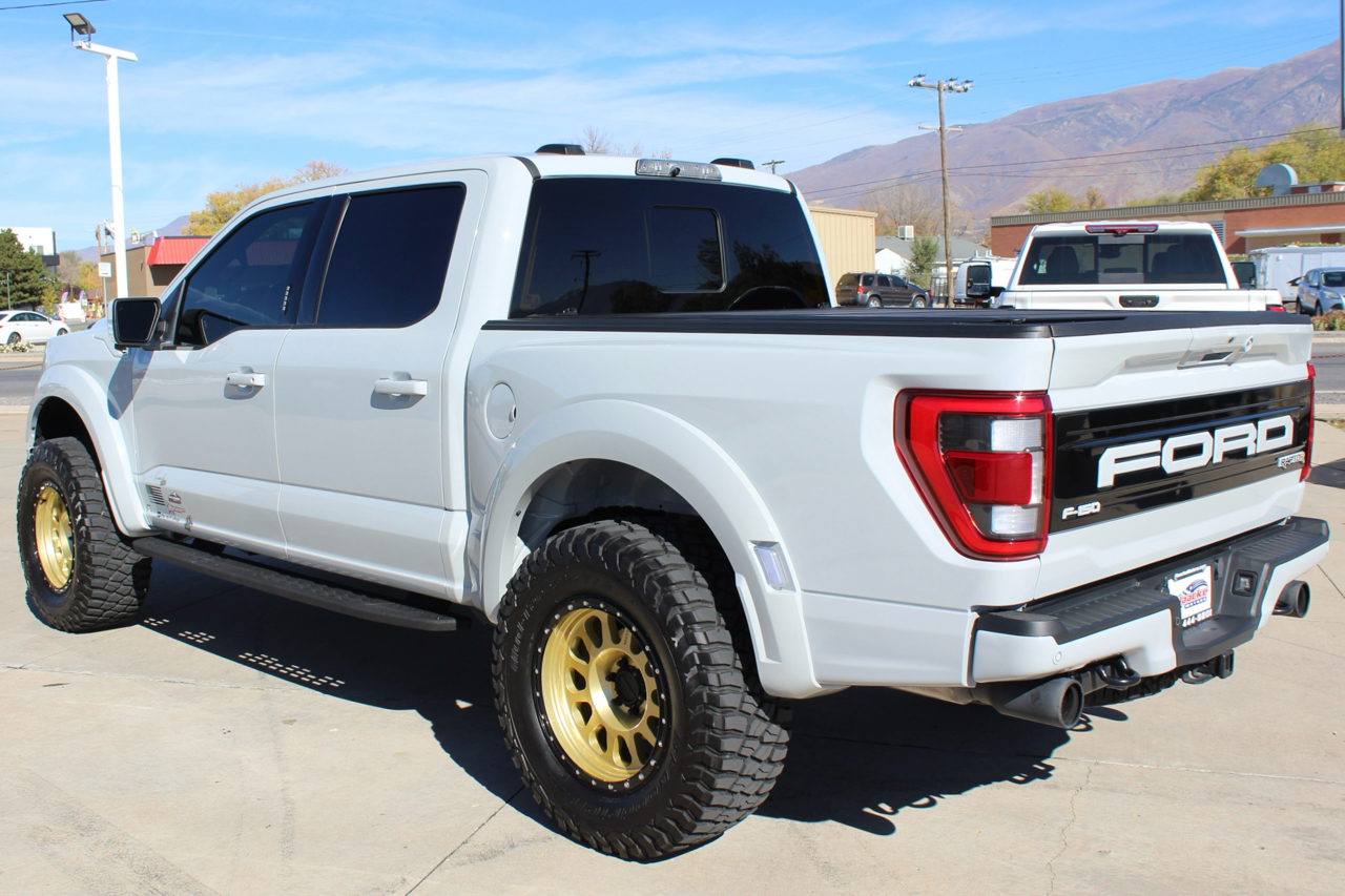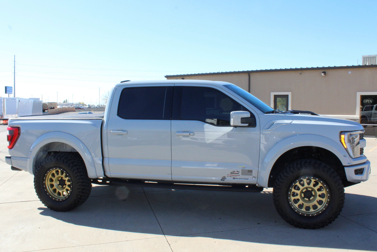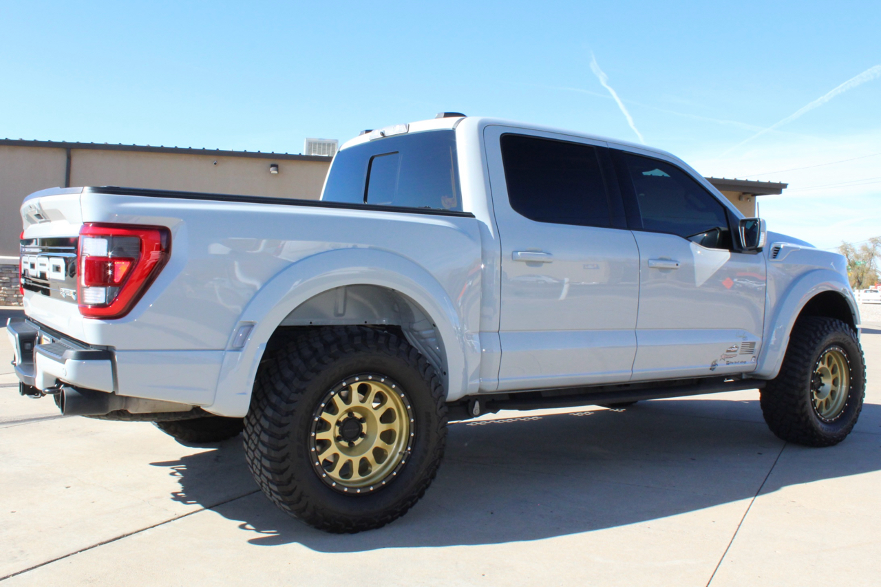 You may need a moment to check your pulse! If this doesn't elevate your heart rate you are probably dead! Just finished and absolutely stunning! This is one of the Baddest Raptors we have built or even seen, (if we do say so ourselves)…. and we have seen and built a lot of them! After a very painful long wait we finally got our hands on this R. Some of the subtle and not so subtle changes are.... 20"x10" Method 315 wheels finished Gold with a gloss black wheel lip, mounted on BFG KM3 Mud Terrain 37"x13.50 R 20 tires, and a RPG 1.5" front spacer make up the stance. We then color matched and custom painted the fender flares, flare extensions, grill, side vents, hood bulge, rear tailgate applique, proximity sensors, emblems, and both front and rear bumpers. We also added a full custom installed bedrug, Molle organizing panel, and a MX4 Bakflip bed cover. To finish up the exterior we tinted all the windows with 3M ceramic tint. Under the hood the 'R" has a TRX killing 5.2 supercharged V8 that makes a healthy 700 Horse Power...well that wasn't good enough so we added a Griptec 2.45 blower pulley to help make more boost at our elevation. Lastly we spent over 30 hours correcting the factory paint and then ceramic coating the entire truck even including the wheels! Not one detail in this build was over looked... notice the matching gold hooks, 'R' emblems, and custom painted tailgate applique.