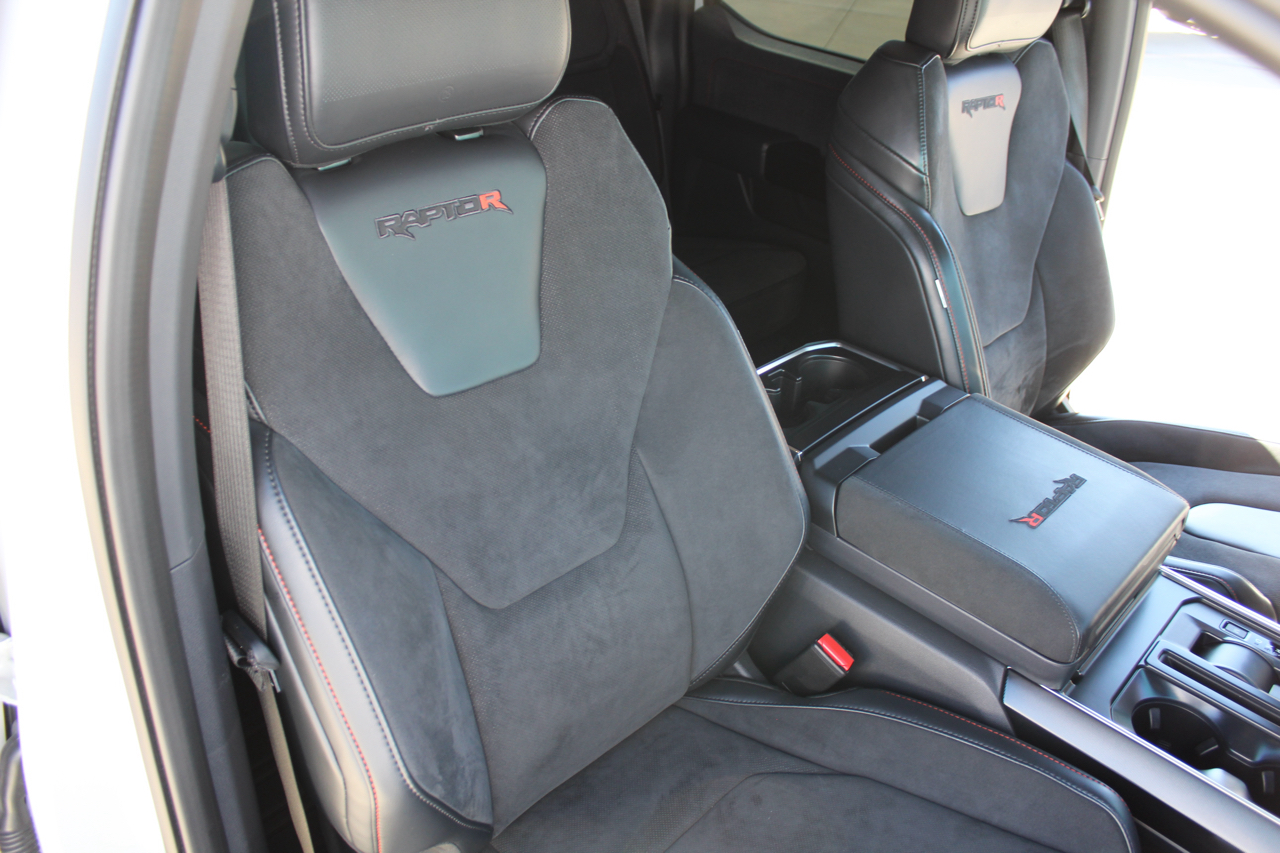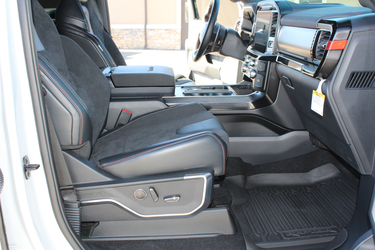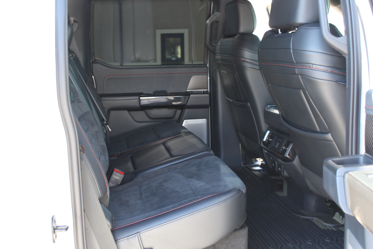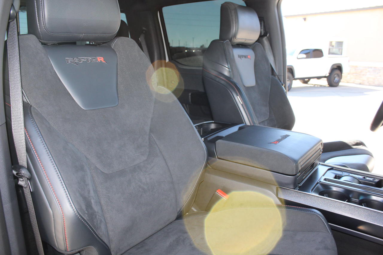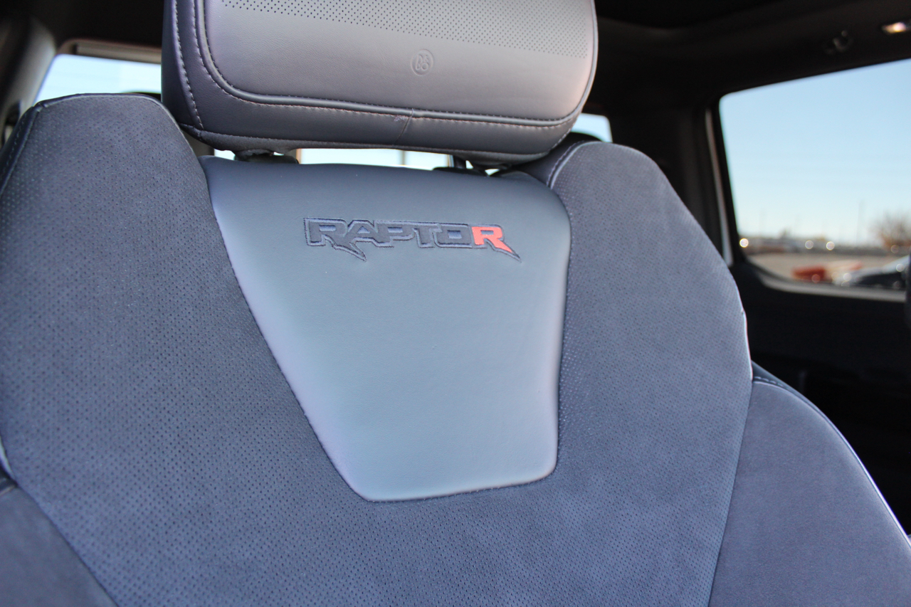 Now for the factory options... 802 A (Raptor R), 5.2 Supercharged V8, Electronic 10 speed automatic transmission, 4.10 gearing with rear electric locker, Twin panel moonroof, Power tailgate, Tailgate step, 50 state emissions, Fox live valve shocks, Recaro Black leather/red contrast stitching, B&O sound system with subwoofer, rear seat partitioned lockable storage, Heated/Cooled front seats, Heated 2nd row seats, Heated steering wheel, Pre-collision assist, Terrain management system, and much much more.