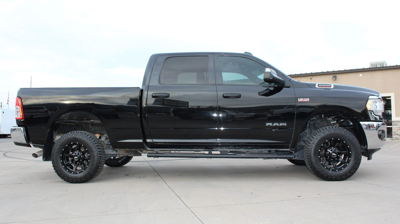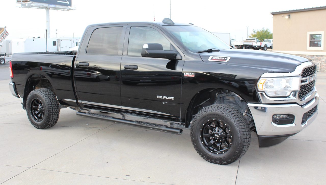 2022 Ram 2500 Crew Cab Tradesman 4WD, 6.4L V8 Hemi Engine, 8-Speed Automatic Transmission, Diamond Black Crystal Pearl-Coat Exterior, Black Interior, BRAND NEW Moto Metal Black Aluminum Wheels Wrapped in Cooper Stronghold AT Tires, Chrome Appearance Group, Tradesman Level 2 Equipment Group, Anti-Spin Rear Differential, Power Black Trailer Tow Mirrors, Trailer Brake Controller, ParkView Rear Back-Up Camera, Electronic Stability Control, Trailer Sway Dampening, Hill-Start Assist, Electronic Roll Mitigation, Traction Control, Power Front Windows With 1-Touch Up/Down, Push Button Start, Uconnect 3 With 5 Inch Touch Screen Display, Class V Receiver Hitch, Power-Heated Mirrors With Fold-Away, Tilt Steering Column.
